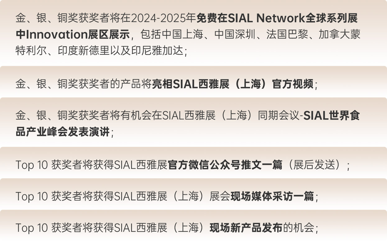 | “2024 SIAL Innovation創(chuàng)新大賽”參賽報名線上通道開放時間延期至4月30日,還未報名參賽的2024 SIAL 西雅國際食品和飲料展覽會(上海)展商,快來報名,抓住向全球展示創(chuàng)新產(chǎn)品的機會!即刻點擊下方“快速報名參賽”按鈕,進入“展商會員中心”后,點擊“上海創(chuàng)新大賽”添加參賽產(chǎn)品信息。 |