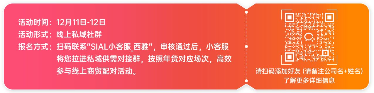 為助力品牌商、經(jīng)銷商、商超等食飲全產(chǎn)業(yè)鏈打好年底最硬的一場“戰(zhàn)役”,SIAL西雅展于12月11日-12日正式啟動線上供需對接活動——“SIAL西雅展秋冬食飲采購節(jié)”。