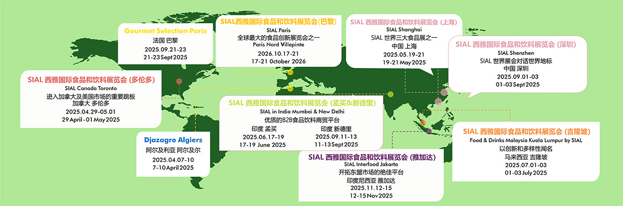 SIAL全球系列食品展今年累計服務全球1.7萬展商、70萬專業(yè)觀眾,2025年SIAL全球系列食品展將在上海、深圳、巴黎、蒙特利爾/多倫多、新德里、吉隆坡、雅加達等地舉辦,展現(xiàn)世界食品創(chuàng)新趨勢,探索應對未來食品挑戰(zhàn)的解決方案。