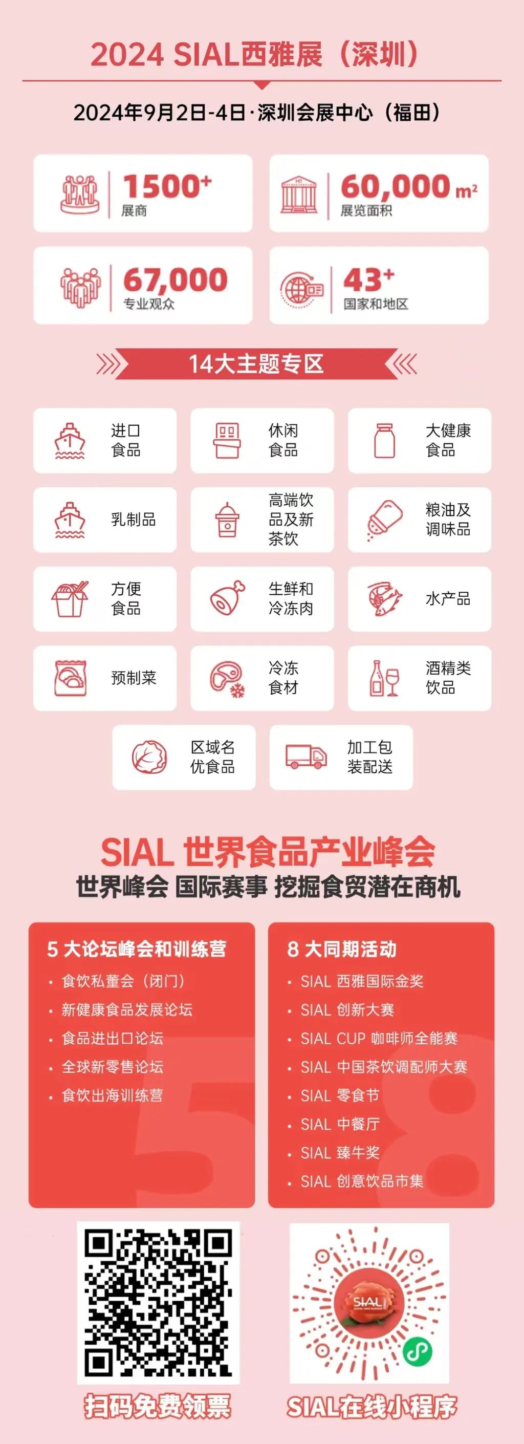 2024 SIAL西雅展(深圳)參觀申請火熱進行中,點擊免費領(lǐng)票,立享免費觀展。掃描下方二維碼也可免費領(lǐng)票。
