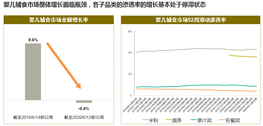 數(shù)據(jù)來(lái)源:凱度消費(fèi)者指數(shù)全國(guó)嬰童樣組,2018年第25周起至2020年第24周,面條品類(lèi)從19年初開(kāi)始監(jiān)測(cè)。