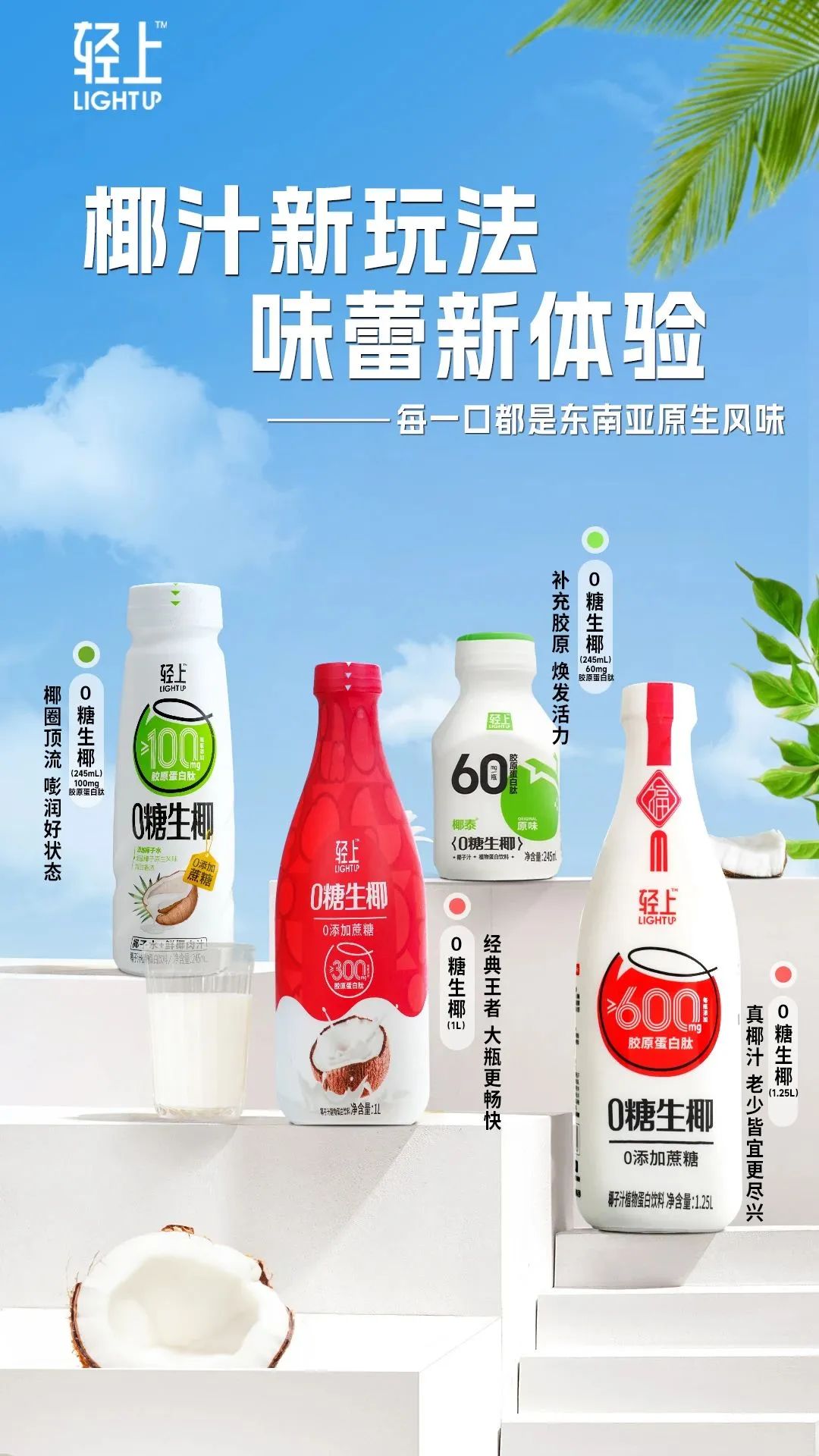 既要健康、要0糖,又要好喝、要營(yíng)養(yǎng),面對(duì)更多元化的消費(fèi)需求,椰泰椰汁全新推出輕上0糖生椰。據(jù)悉,新品精選東南亞進(jìn)口陽(yáng)光鮮椰生榨,主打“0添加蔗糖”,添加膠原蛋白肽,好喝無(wú)負(fù)擔(dān)。在容量設(shè)計(jì)上,0糖生椰有245ml、1L和1.25L多種規(guī)格,增加了在多種飲用場(chǎng)景的便利性和社交屬性。