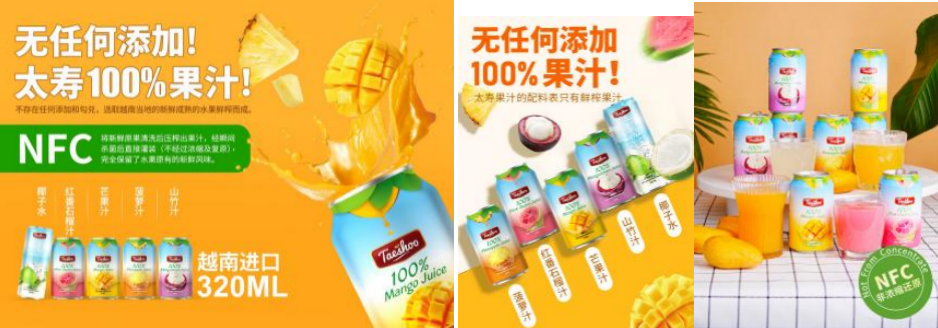 《植物水市場(chǎng)規(guī)模、份額、增長(zhǎng)和行業(yè)分析》中指出,椰子水、楓樹(shù)水和樺樹(shù)水是全球最受歡迎的植物水品類。太壽100%椰子水中含有豐富的鈉、鎂、鉀等礦物質(zhì),能夠快速補(bǔ)充電解質(zhì),成分健康零添加、口感清爽味道好、低糖低卡不長(zhǎng)胖。除了椰子水,太壽100%果汁也備受消費(fèi)者喜愛(ài),該產(chǎn)品全部選自越南當(dāng)?shù)厮a(chǎn)區(qū)的成熟新鮮水果。越南是熱帶季風(fēng)氣候,光照充足,雨量充沛,特別適合熱帶水果生長(zhǎng),產(chǎn)出的熱帶水果口味極佳。同樣,該產(chǎn)品采用的也是NFC非濃縮還原工藝,配料表只有果汁,不存在任何添加劑和勾兌,直接由鮮果壓榨(打漿)制得,沒(méi)有經(jīng)過(guò)濃縮后再兌水,不但能更好地保留水果原有的口味,更能鎖住更多營(yíng)養(yǎng),更加健康。