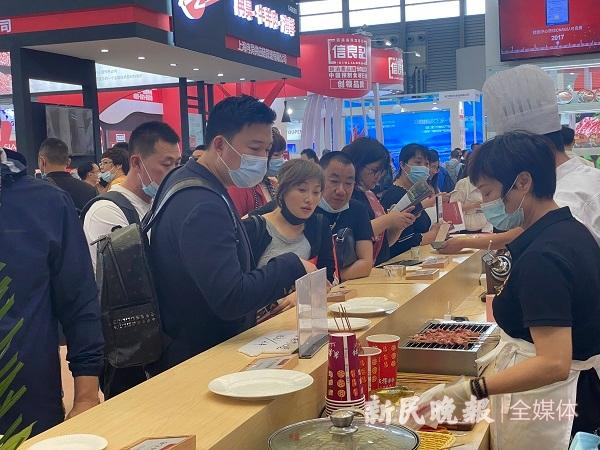 圖說:展會(huì)現(xiàn)場觀眾試吃美食 錢文婷 攝(下同)