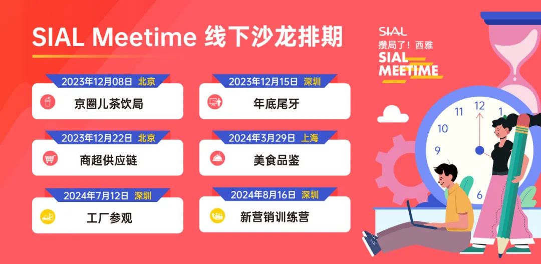 <SIAL Meetime 攢局了!西雅>是SIAL西雅國際食品展面向食飲行業(yè)推出的全新主題系列沙龍活動,每一期以不同形式主題活動召集食品、飲料、餐飲行業(yè)從業(yè)者參與,在輕松愉悅的氛圍中獲取行業(yè)知識,結(jié)交新的伙伴,開拓更多潛在商機(jī)。