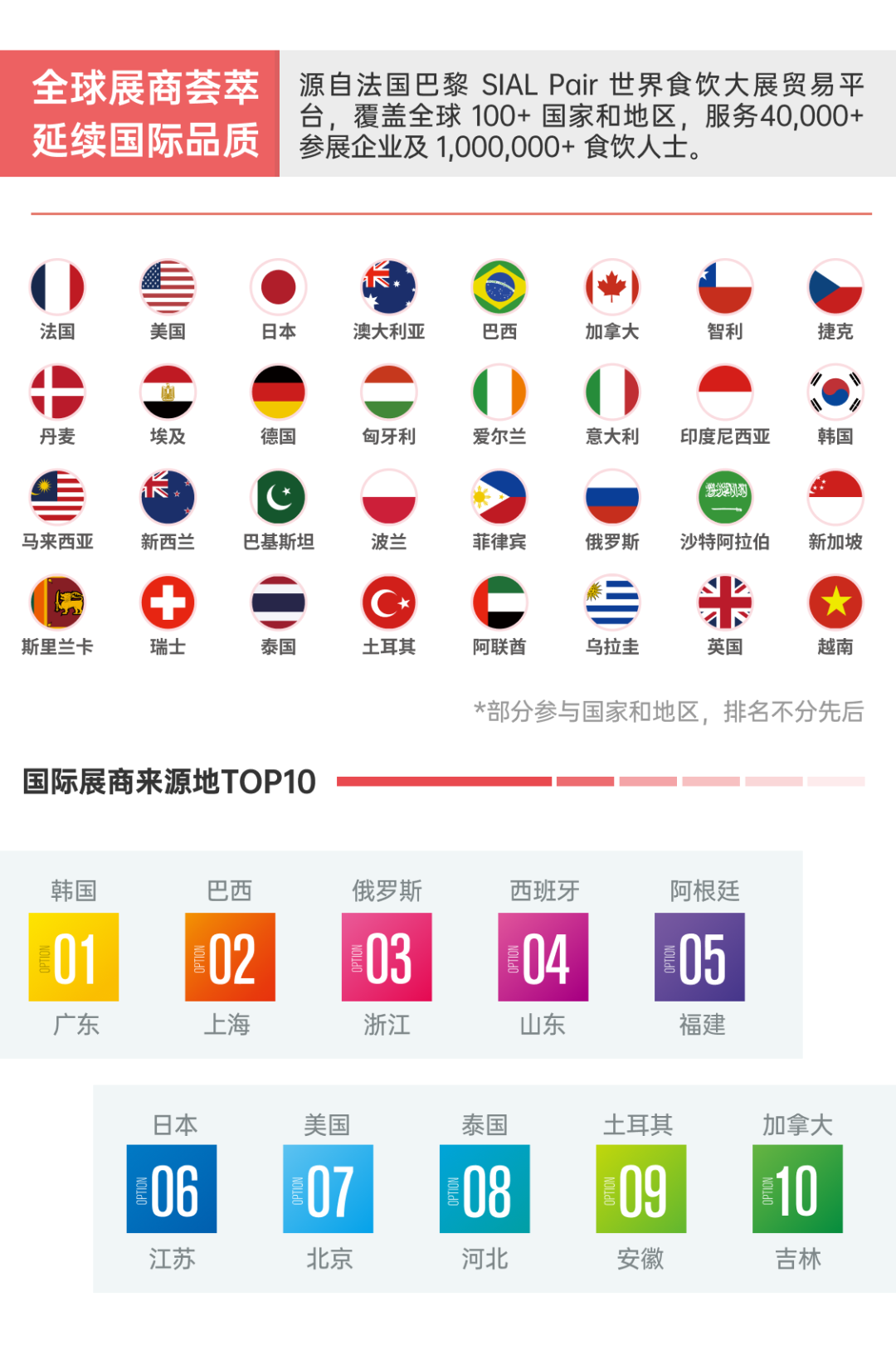 作為以國(guó)際性、專業(yè)性、貿(mào)易性以及創(chuàng)新性著稱的世界食飲大展,2024 SIAL 西雅展上海不僅有來(lái)自中國(guó)、巴西、土耳其、阿根廷、美國(guó)、西班牙等70+國(guó)家及地區(qū)的國(guó)際展團(tuán)(部分國(guó)際展團(tuán)的場(chǎng)館面積超上千平方米),更有來(lái)自全球各地的專業(yè)國(guó)際買家團(tuán)到場(chǎng)采購(gòu)。